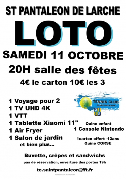 - Tennis club Saint Pantaléonnais - Loto du samedi 12 octobre 2024