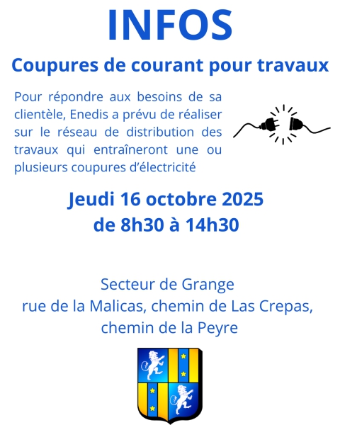 - Coupure de courant pour travaux - 16 10 2025 - Secteur de Grange