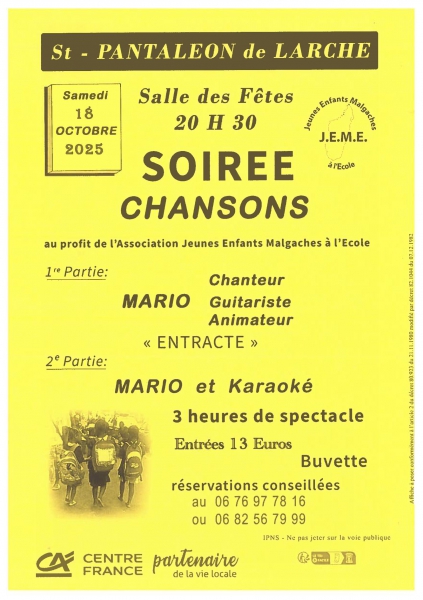 Retrouvez ici l'affiche du spectacle de fin d'année de l'école de Musique, le 24 mai 2025 à la salle des fêtes de Larche.